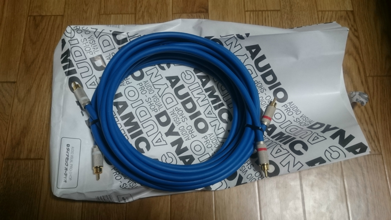 さすがにぺなぺななラインケーブルを使い続けるのも気が引けたので、秋葉原にあるダイナミックなオーディオ店にて、スピーカーケーブル『ortofon Reference SPK-Blue』元に作って頂いたショップ作のRCAケーブルを購入して換装しました。