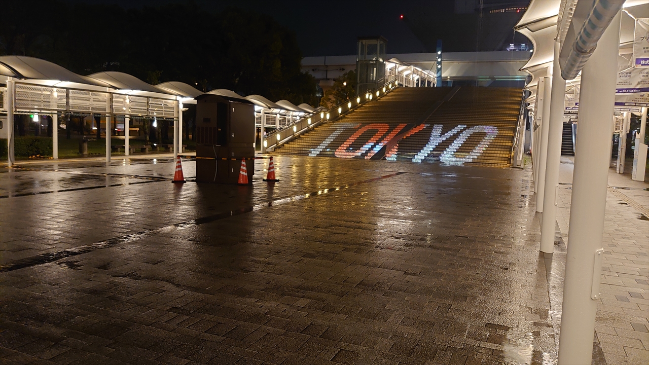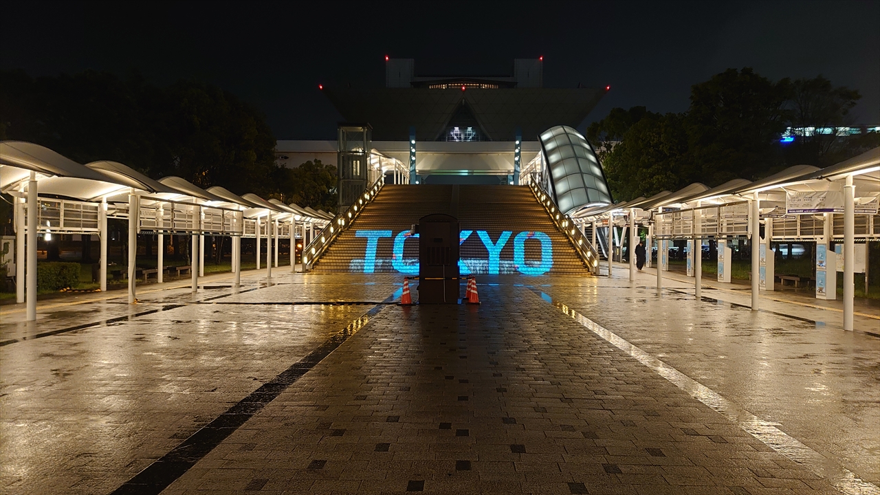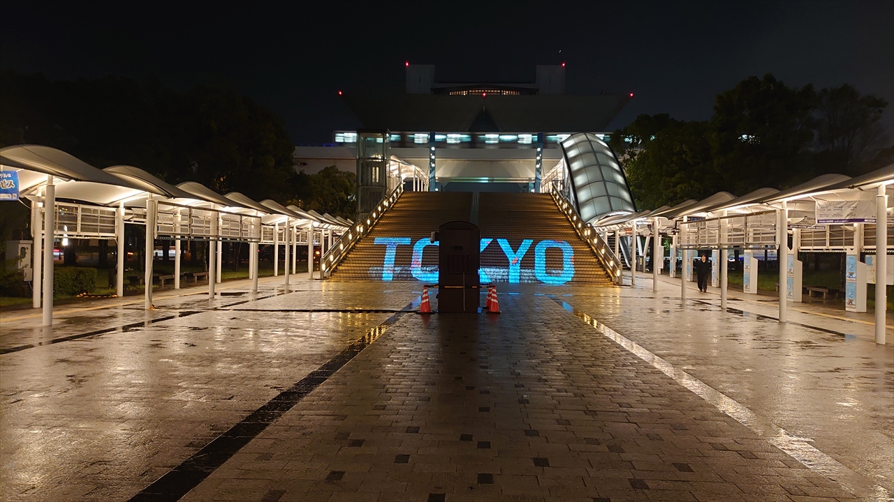 手前の投影小屋のお陰で何もかも台無し感が凄いTOKYOのプロジェクションマッピング。